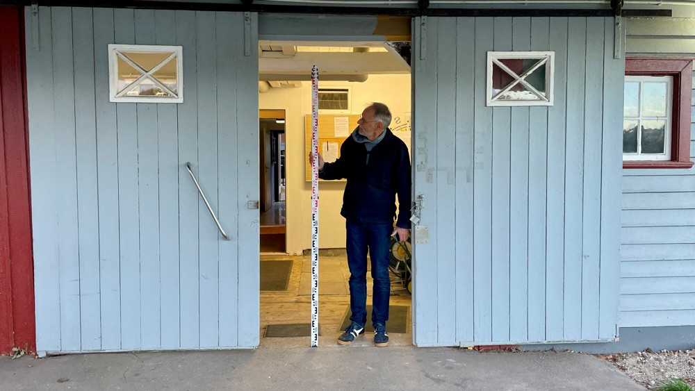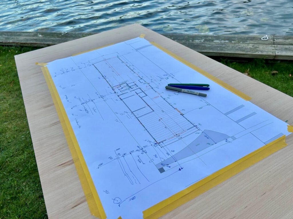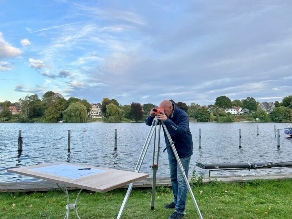 Nein – aber nivelliert. Zur Vorbereitung der Planungen für die neue Regenwasserableitungen sowie die Reparatur der Schmutzwasserleitung hat Reinhold am Bootshaus eine Niveaumessung an verschiedenen Punkten vorgenommen. Zusammen mit Steffen wurden verschiedenste Höhenpunkte am Bootshaus sowie dem umgebenden Gelände des SC Hansa und der Straße gemessen. Dazu kam ein Nivelliergerät, verschiedene Messlatten und Zollstöcke sowie ein langes Maßband zum Einsatz. Die Höhenpunkte wurden dann im Grundriss des Bootshauses und des umliegenden Geländes eingetragen. Reinhold wird daraus eine Reinzeichnung machen, die als Planungsgrundlage für die neuen Ableitungen dienen kann. Über Weiteres werden wir euch auf dem Laufenden halten.