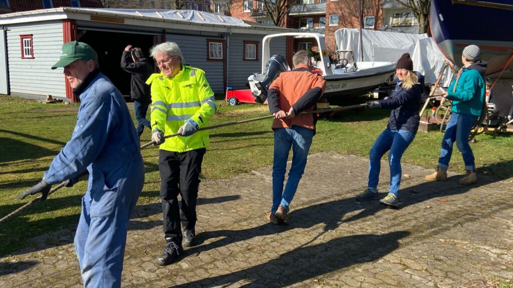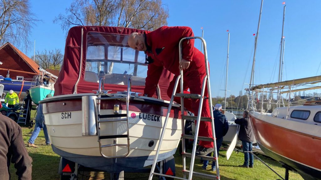 Was gibt es Schöneres, als bei bester Stimmung gemeinsam anzupacken? Insgesamt 24 tatkräftige Mitglieder fanden sich ein, um die Boote sicher zu Wasser zu lassen. Es ist immer wieder beeindruckend zu sehen, wie die eingespielten Abläufe bei uns im SCH funktionieren – da sitzt jeder Handgriff. Dank dieser großartigen Zusammenarbeit waren alle Boote innerhalb von nur dreieinhalb Stunden im Wasser und bereit für den baldigen Schlepp zum Ratzeburger See. Die Motivation war jedem Einzelnen anzumerken, schließlich rückt der erste Segelschlag nun in greifbare Nähe.