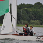 Mit Abständen von ca. drei Minuten zwischen dem ersten und dem letzten Boot lag das Feld in allen Wettfahrten im Zieleinlauf nahe beieinander. Nur knapp verpasste Michael Schröter (LSV) mit seiner Steuerfrau Anne Helms in der zweiten Wettfahrt im Ziel die Chance, noch einen Platz gutzumachen. Mit gleitendem Boot machten die beiden auf dem Raumwindkurs ins Ziel noch einige Bootslängen wett – schlussendlich fehlten 40 cm zum Bug des vorplatzierten Bootes.