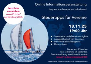 Vortrag “Steuertipps für Vereine“ am 18.11.2025